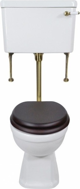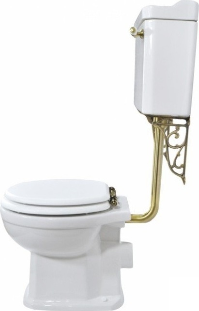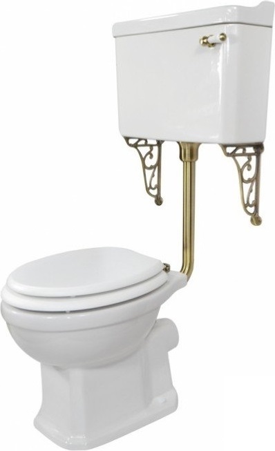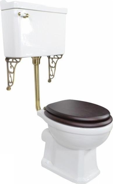 Унитаз-компакт Magliezza Retro 7009, цвет белый, низкая труба с механизмом слива, с боковой ручкой, с кронштейнами (2 шт), цвет бронза. Сиденье с крышкой приобретается отдельно.