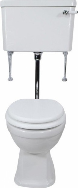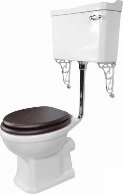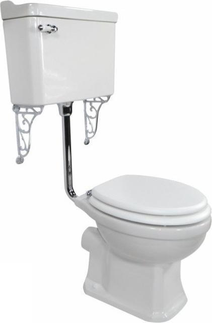 Унитаз-компакт Magliezza Retro 7009, цвет белый, низкая труба с механизмом слива, с боковой ручкой, с кронштейнами (2 шт), цвет хром. Сиденье с крышкой приобретается отдельно.