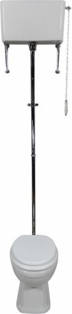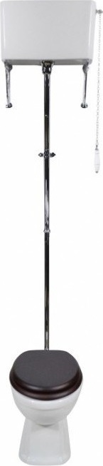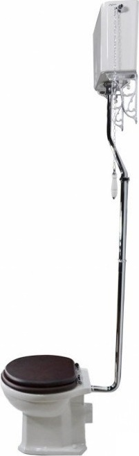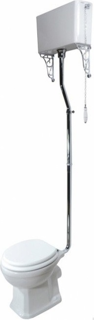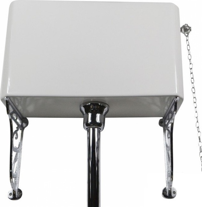 Унитаз-компакт Magliezza Retro 7010, цвет белый, высокая труба с механизмом слива, с цепочкой и керамической ручкой, с кронштейнами (2 шт.), цвет хром. Сиденье с крышкой приобретается отдельно.