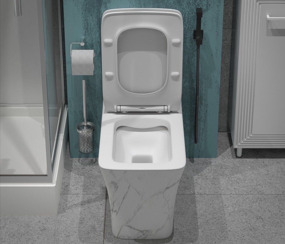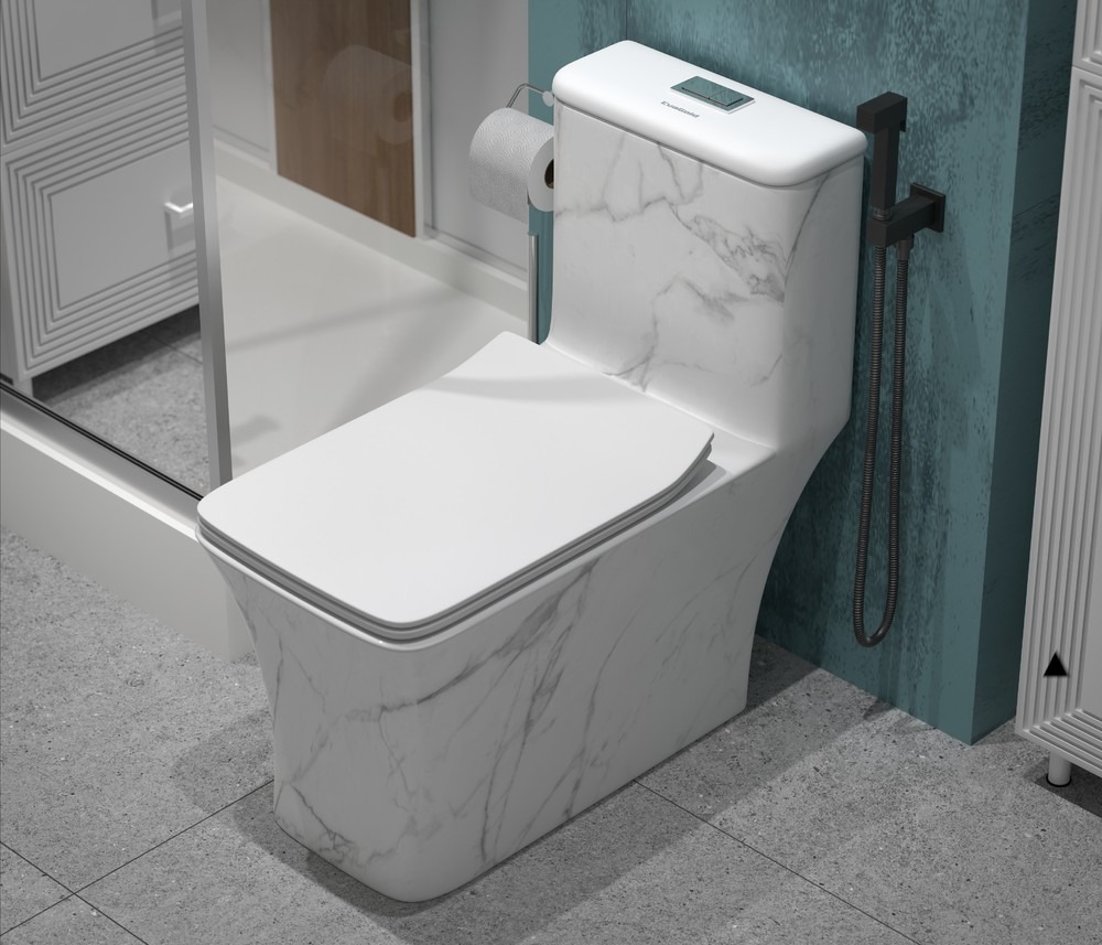 Декор "Мрамор". Унитаз - монолит (моноблок) имеет приемущества перед унитазом-компактом в том, что у него нет соединения между унитазом и бачком, являясь одним целым изделием. Данная технология производства позволяет выполнить оригинальный дизайн изделия, исключить возможность поломки крепления бачка к унитазу, исключить течь между унитазом и бачком, упрощает установку и обслуживание изделия. В комплекте: крепление к полу, арматура двухуровнего слива, сидение с доводчиком.