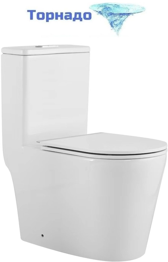 Унитаз-моноблок безободковый SantiLine SL-5029 с тонкой крышкой микролифт (система смыва Торнадо)