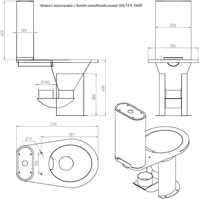 Описание унитаз напольный антивандальный Тругор 00-00036077
