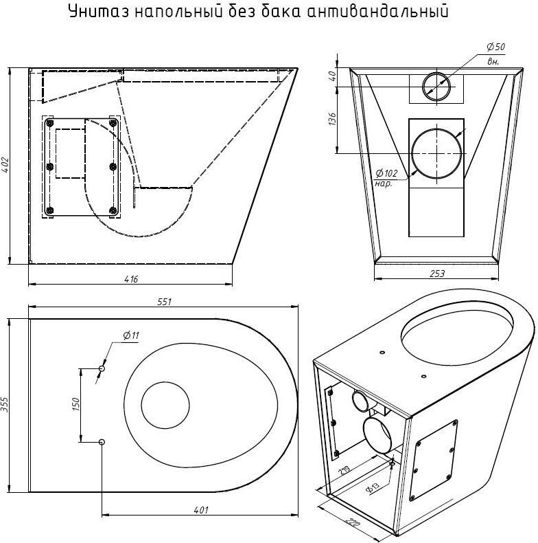 Описание унитаз подвесной антивандальный Тругор 00-00022066