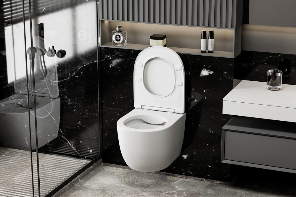 Унитаз подвесной безободковый Abber Bequem AC1100MW с крышкой микролифт, белый матовый