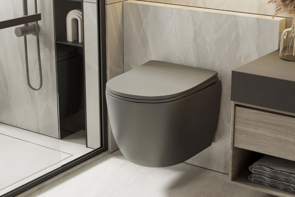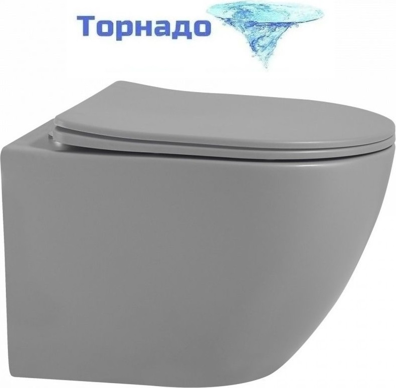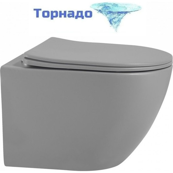 Унитаз подвесной безободковый Abber Bequem AC1101TMG с крышкой микролифт, серый матовый (система смыва Торнадо)