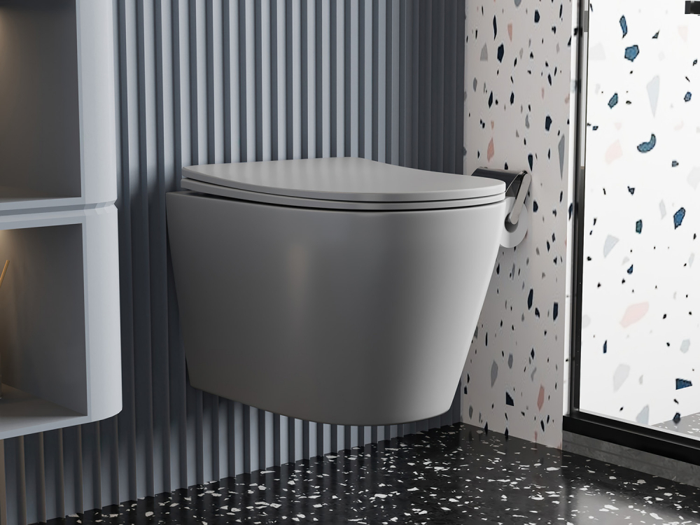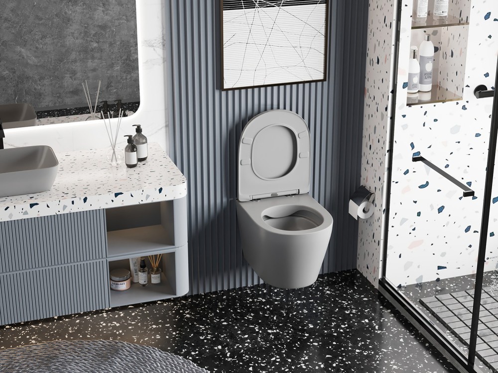 Унитаз подвесной безободковый Abber Bequem AC1102MG с крышкой микролифт, серый матовый