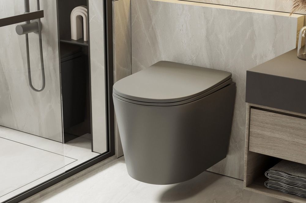 Унитаз подвесной безободковый Abber Bequem AC1102TMG с крышкой микролифт, серый матовый (система смыва Торнадо)