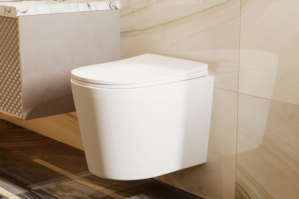 Унитаз подвесной безободковый Abber Bequem AC1102TMW, сиденье с крышкой микролифт, цвет белый матовый.