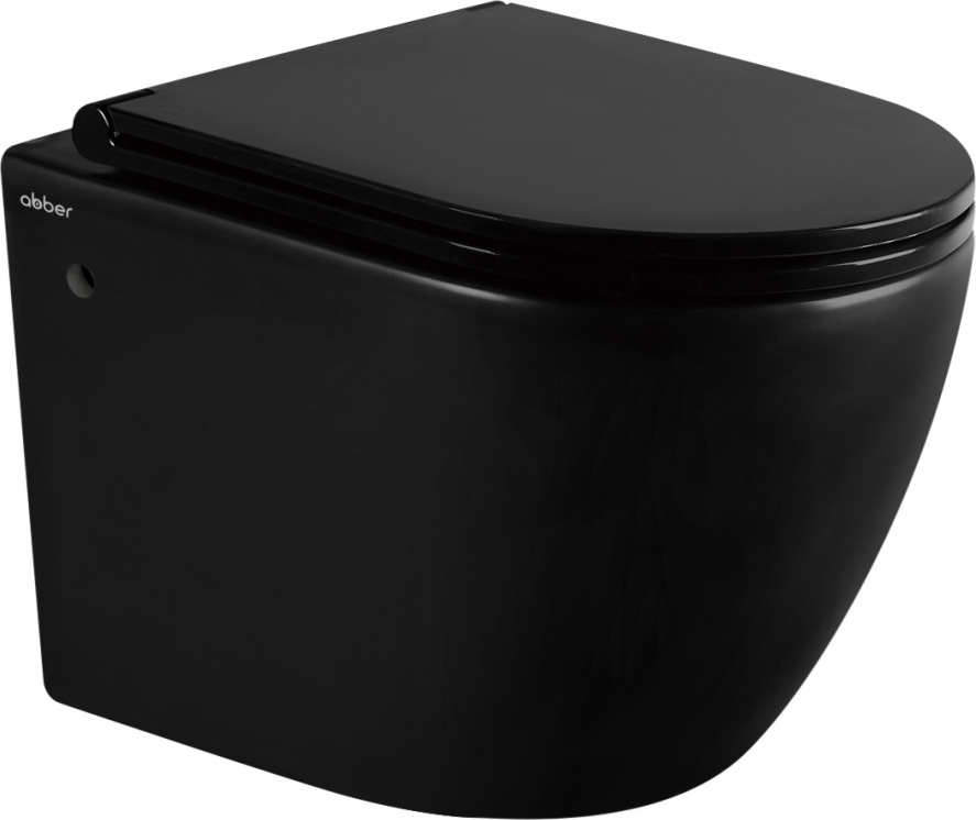 Унитаз подвесной безободковый Abber Bequem AC1103MB с крышкой микролифт, чёрный матовый