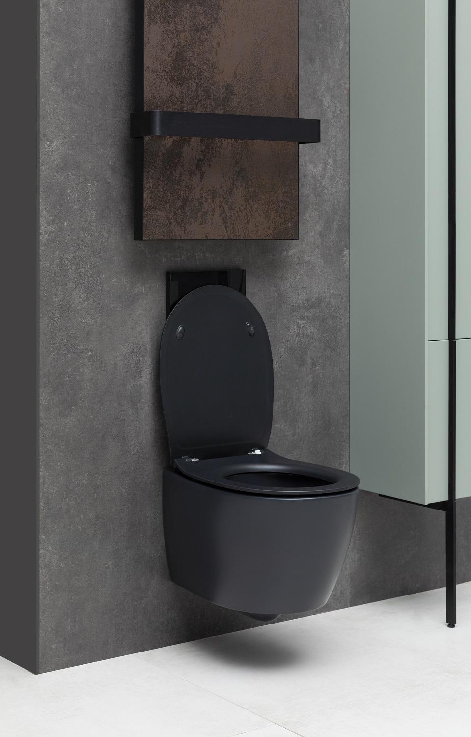 - Навесной унитаз покрыт грязеотталкивающей эмалью, обеспечивая легкость в уходе и долговечность.