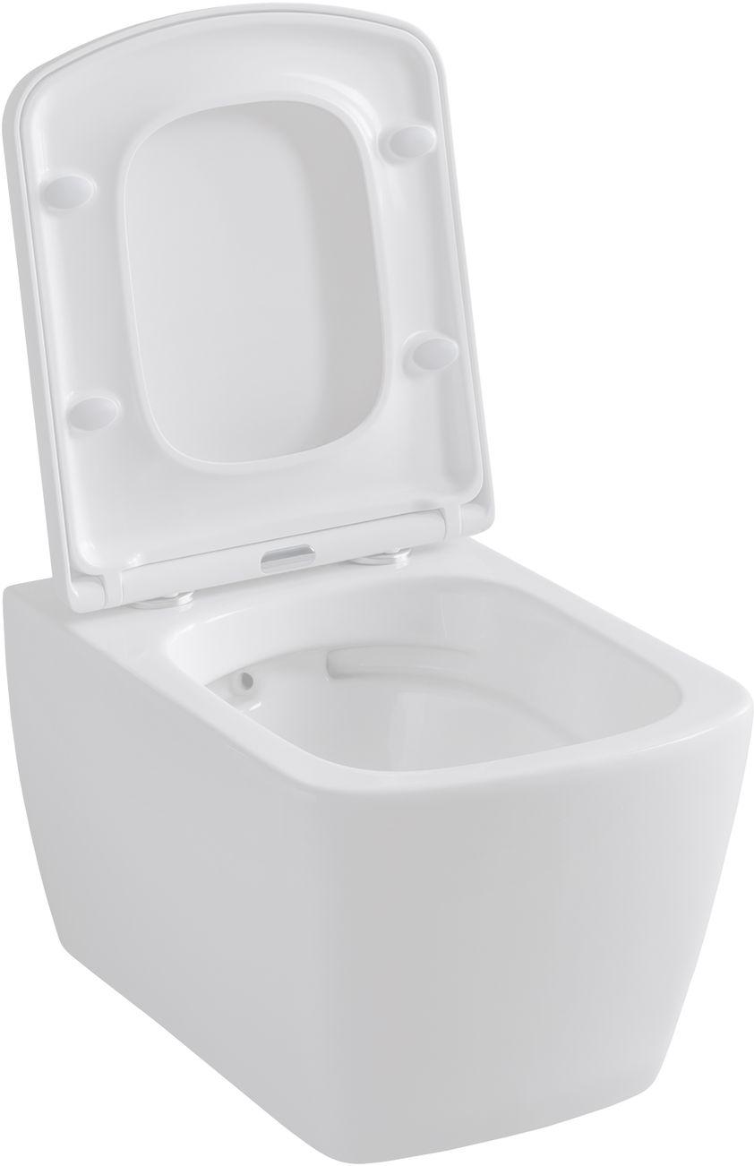 - Сам унитаз безободковый, что прибавляет ему гигиеничности: загрязнения не скапливаются в труднодоступных местах, а сама чаша быстро очищается подручными средствами.