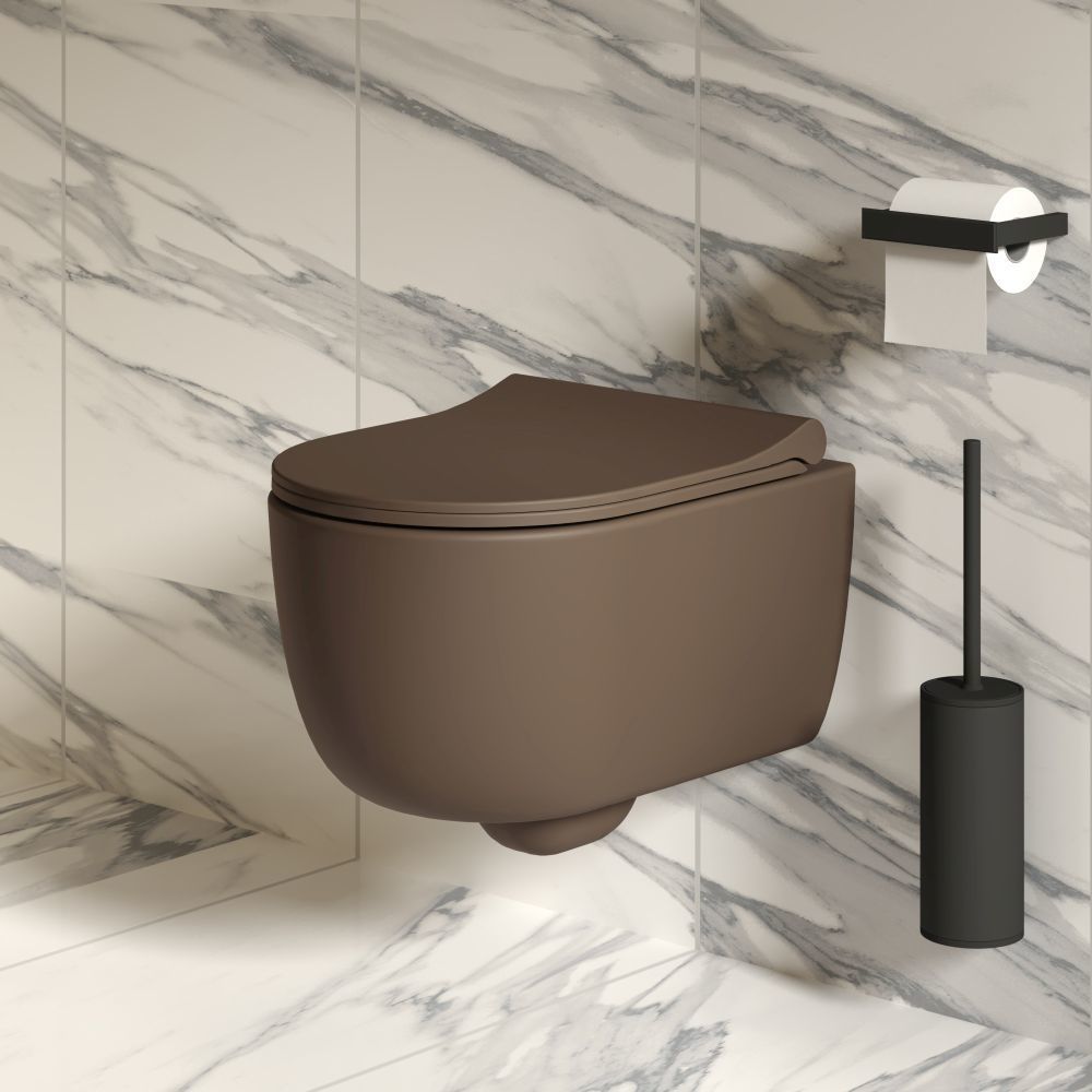 Унитаз подвесной безободковый Ambassador Abner 103T20601R, цвет коричневый матовый. Сиденье с крышкой для унитаза приобретается отдельно.