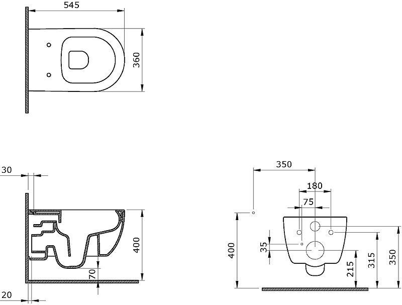 Характеристики унитаз безободковый,унитаз подвесной Ambassador (103T21001R)