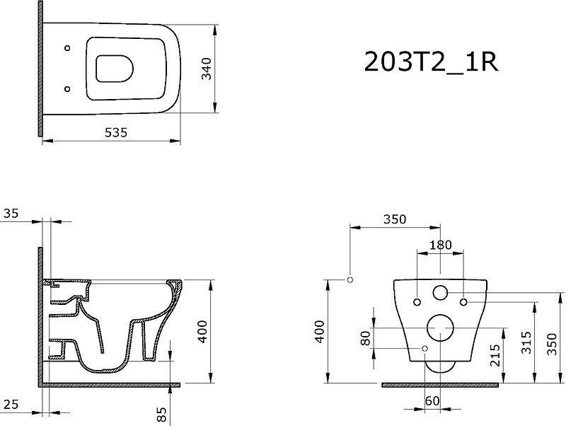 Характеристики унитаз безободковый,унитаз подвесной Ambassador (203T20201R)