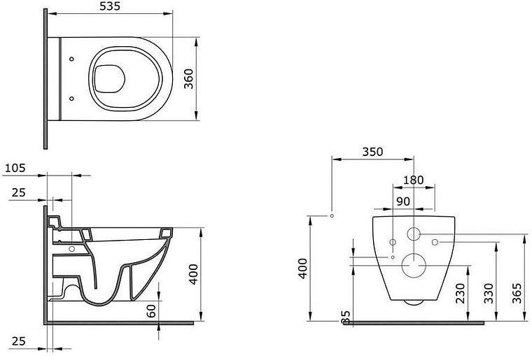 Характеристики унитаз безободковый,унитаз подвесной Ambassador (133T20101)