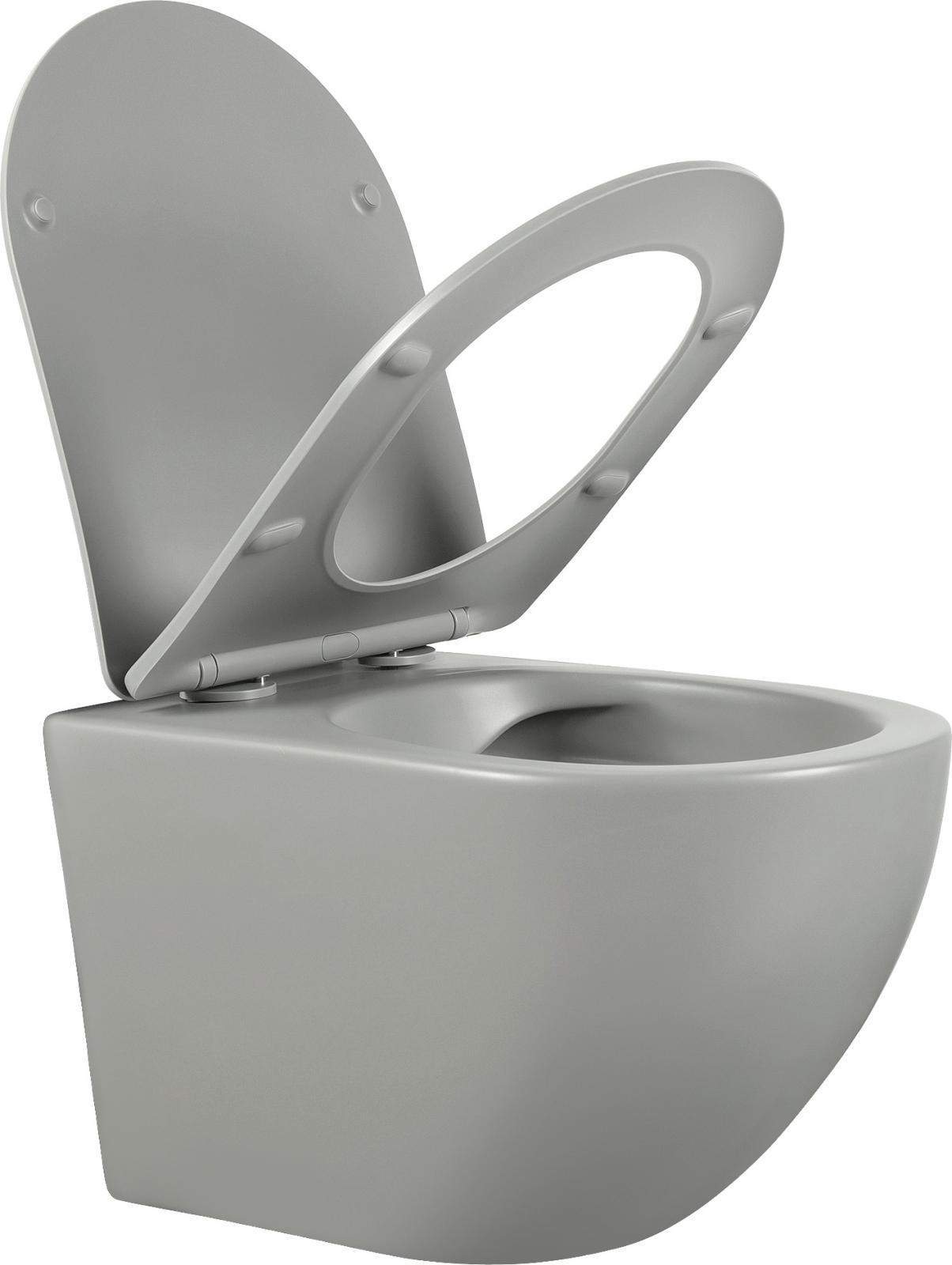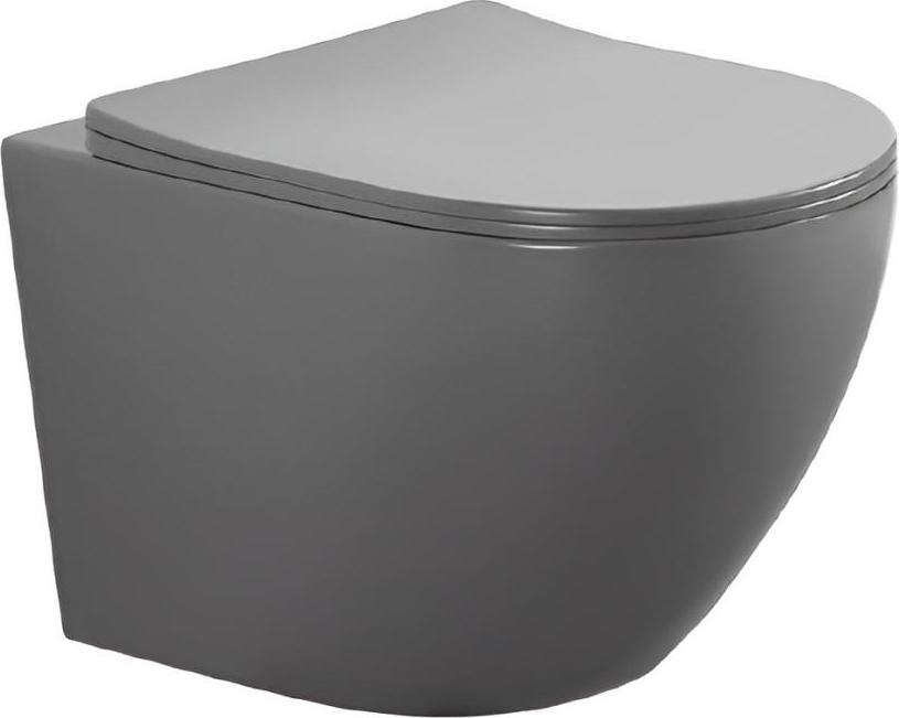 Унитаз подвесной безободковый Aquatek Европа AQ1901-MG с тонкой крышкой микролифт, серый матовый