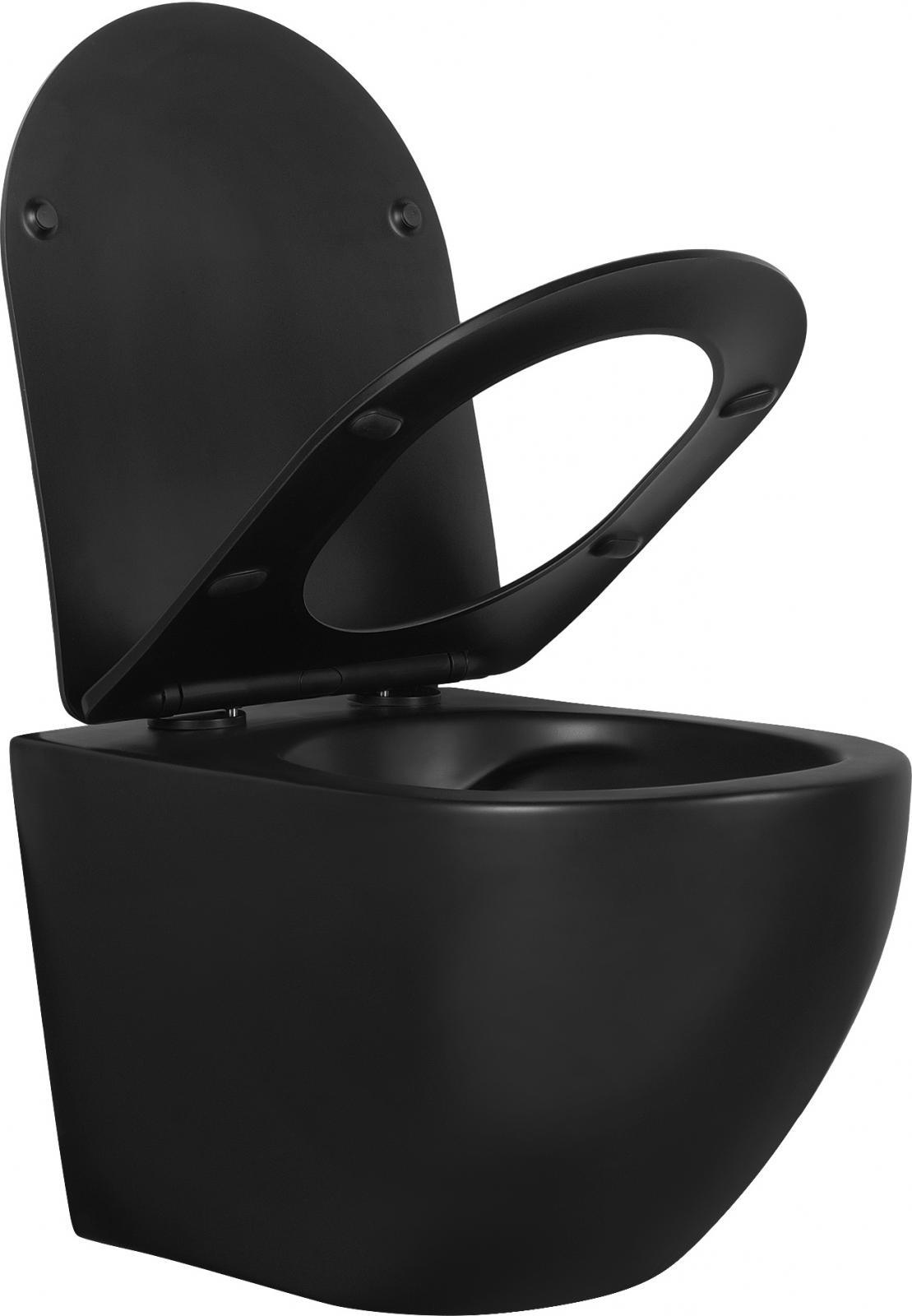 Унитаз подвесной безободковый Aquatek Европа AQ1901-MB с тонкой крышкой микролифт, чёрный
