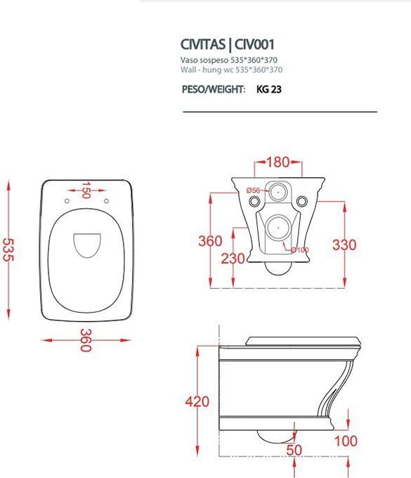Описание унитаз подвесной ArtCeram CIV001 02 00