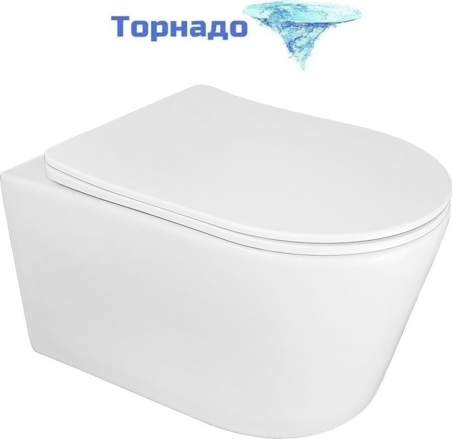 Унитаз подвесной безободковый Azario Ollin AZ-0513R, система смыва торнадо, в комплекте сиденье с крышкой микролифт, цвет белый.