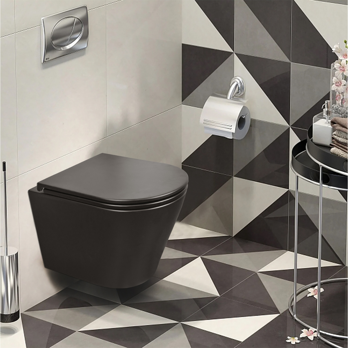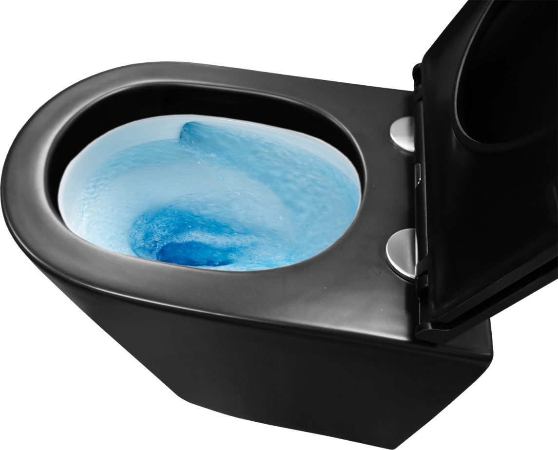 Унитаз подвесной безободковый Azario Teramo AZ-0053-UQ3-MB с крышкой микролифт (система смыва Торнадо) чёрный матовый
