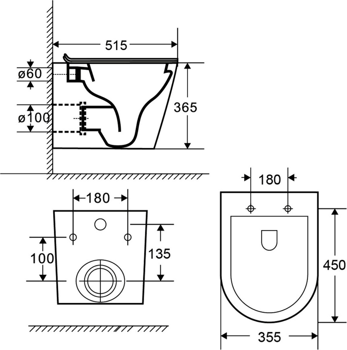 Характеристики унитаз безободковый,унитаз подвесной Azario (AZ-0053-UQ3-MB)