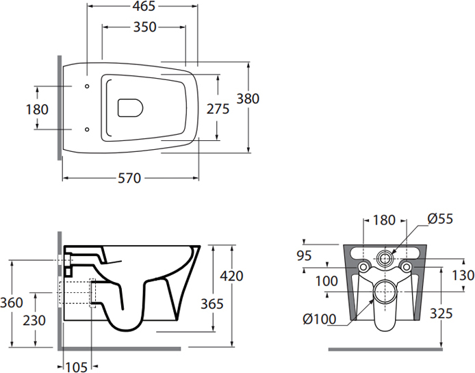 Характеристики унитаз безободковый,унитаз подвесной Azzurra (HEVKSPE00000BI;HER1800/F)
