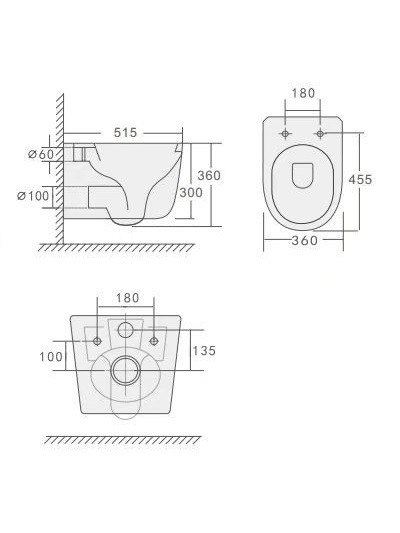 Характеристики унитаз безободковый,унитаз подвесной Boheme (969-SET-B)