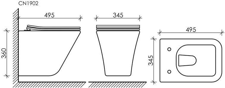 Характеристики унитаз безободковый,унитаз подвесной Ceramicanova (CN1902)