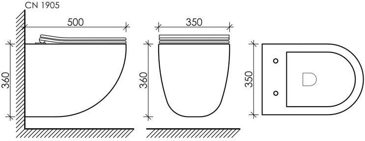 Характеристики унитаз безободковый,унитаз подвесной Ceramicanova (CN1905)