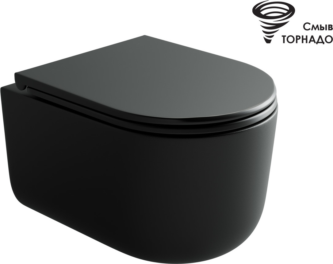 Подвесной унитаз Ulma Торнадо безободковый, с ультратонким сиденьем с микролифтом, с креплением скрытого монтажа, черный матовый