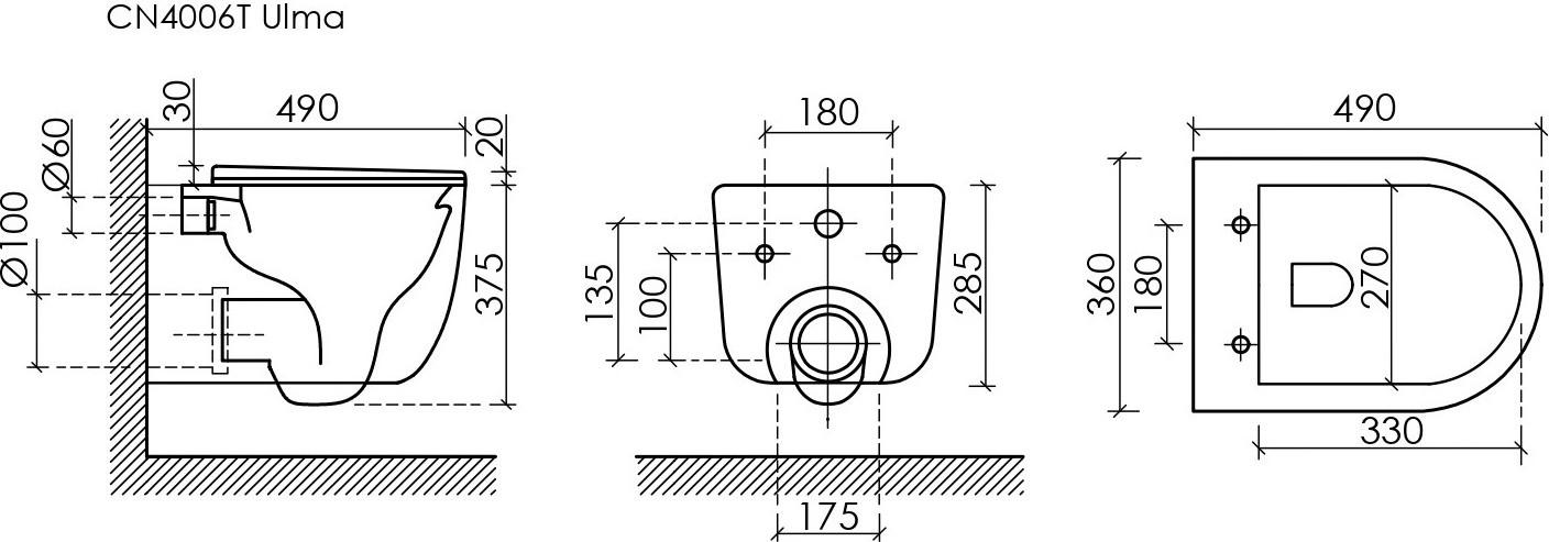 Характеристики унитаз безободковый,унитаз подвесной Ceramicanova (CN4006TMB)