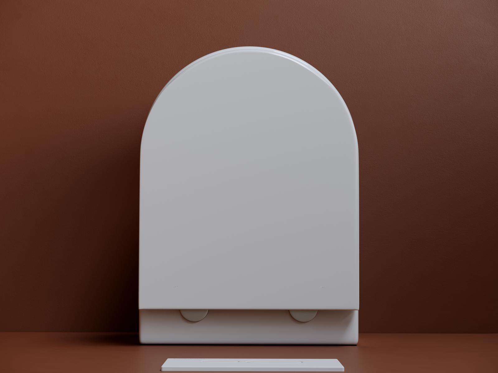 Подвесной унитаз UP безободковый, смыв Торнадо, с крепежом для полностью скрытого монтажа, ультратонким сидением и крышкой с функцией плавного закрытия, цвет белый.