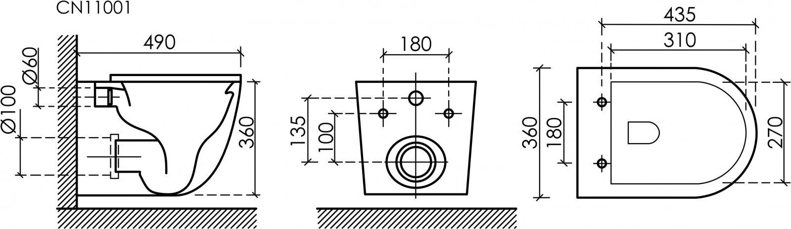 Характеристики унитаз безободковый,унитаз подвесной Ceramicanova (CN11001MB)