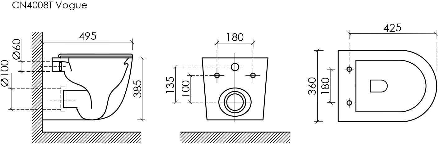 Характеристики унитаз безободковый,унитаз подвесной Ceramicanova (CN4008T)