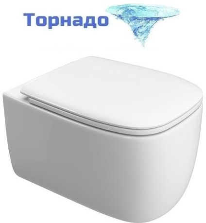 - Унитаз подвесной безободковый с сиденьем и смывом TORNADO