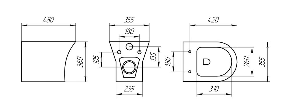 Характеристики унитаз безободковый,унитаз подвесной EvaGold (EG070002)