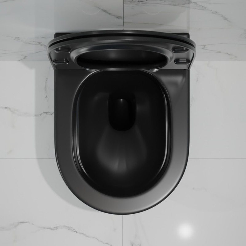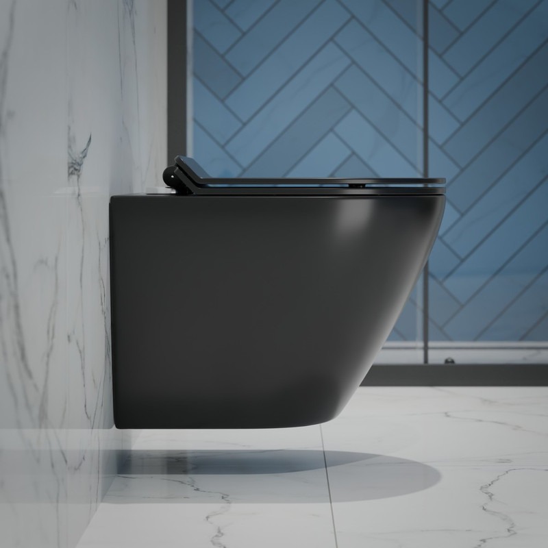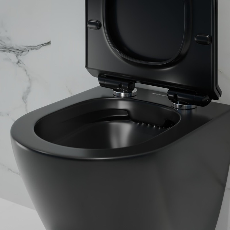 Унитаз подвесной безободковый EvaGold EG070003 с тонкой крышкой микролифт, чёрный матовый