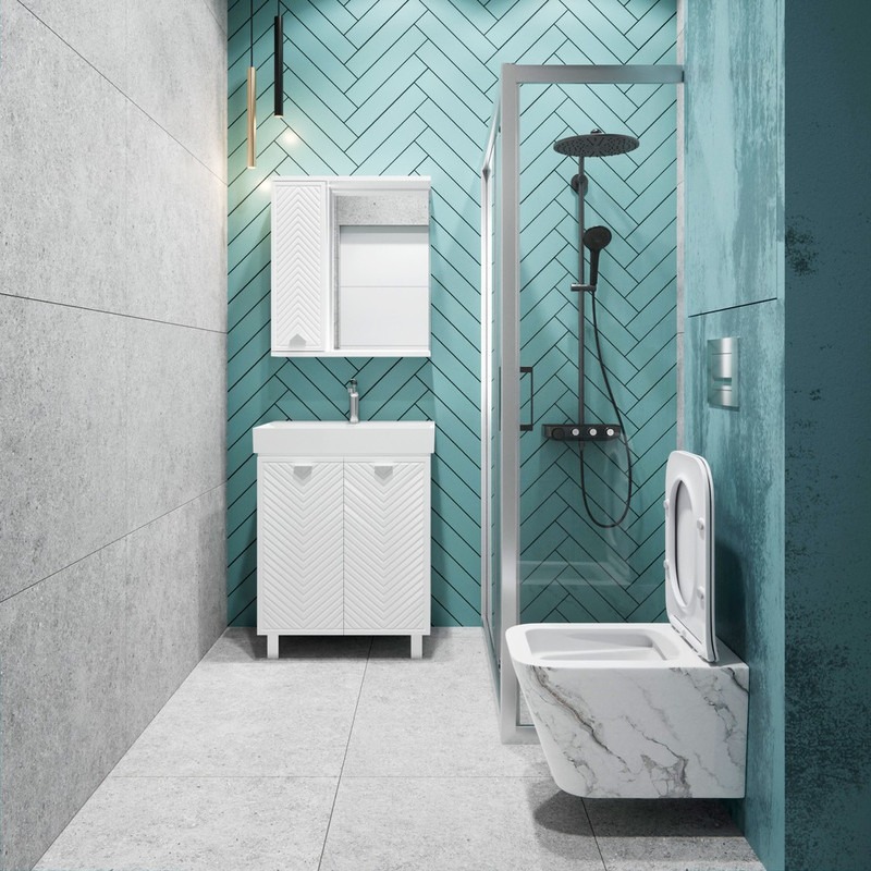 Унитаз подвесной безободковый EvaGold EG070018, каскадный слив, сиденье с тонкой крышкой микролифт, цвет белый мрамор.