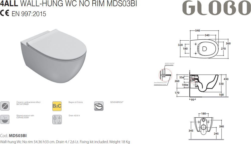 Характеристики унитаз безободковый,унитаз подвесной Globo (MDS03.SK)