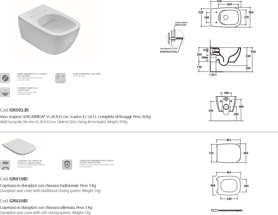 Характеристики унитаз безободковый,унитаз подвесной Globo (GNS02.BI)