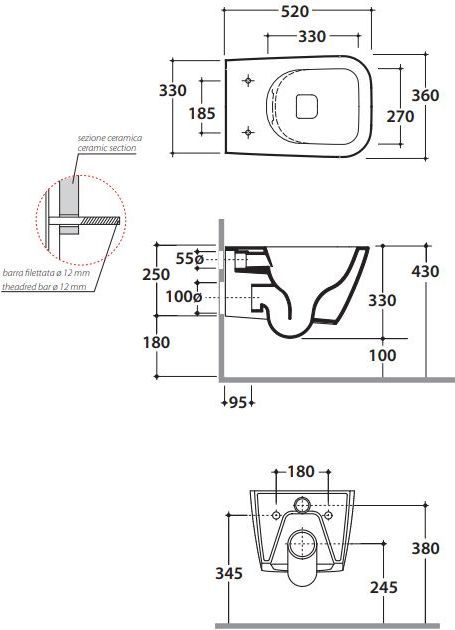 Характеристики унитаз безободковый,унитаз подвесной Globo (STS05.AR)