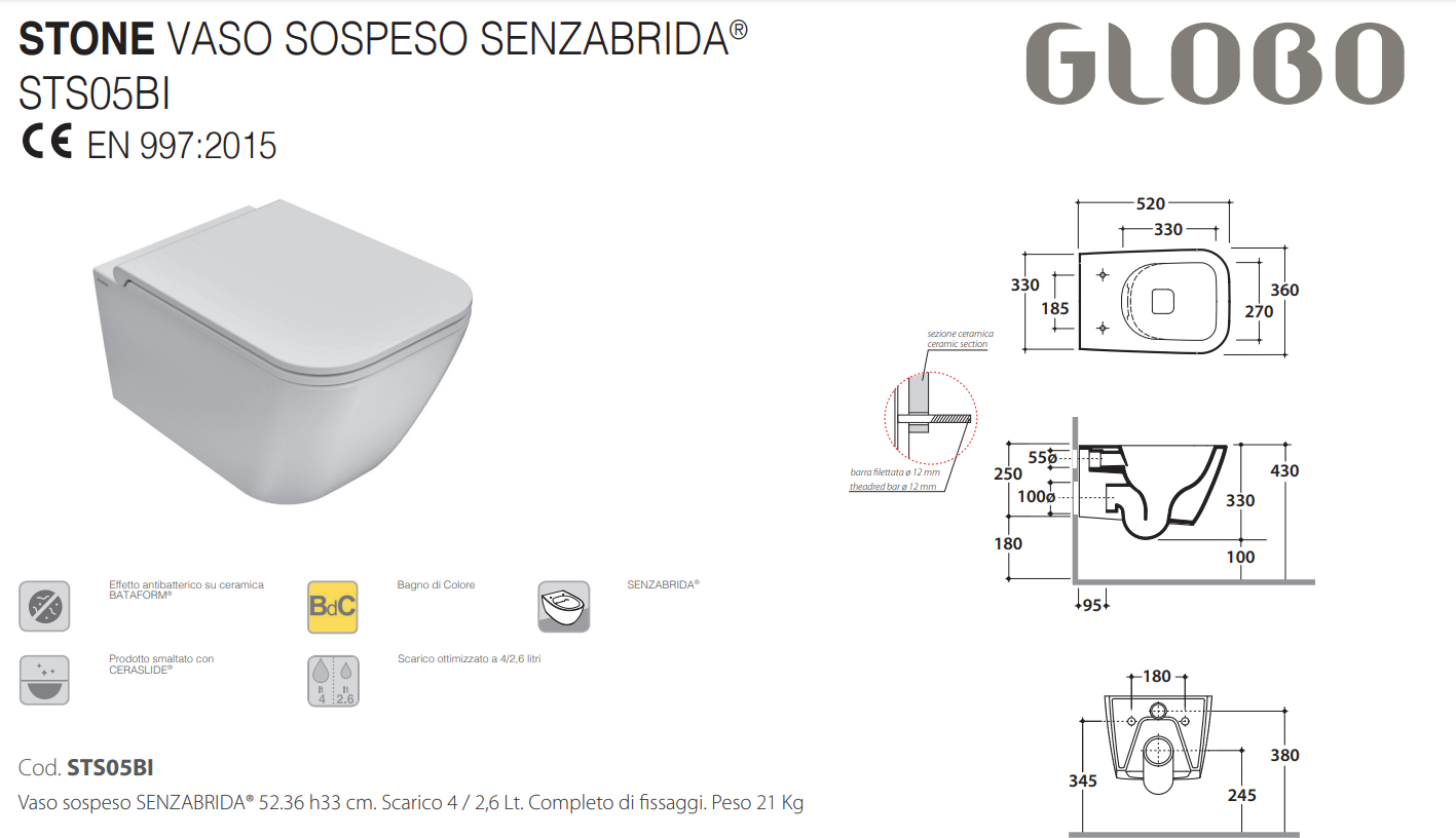 Характеристики унитаз безободковый,унитаз подвесной Globo (STS05.AT)