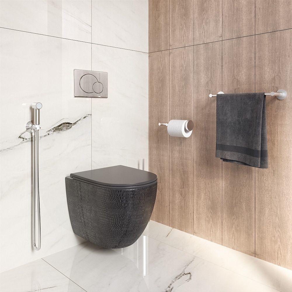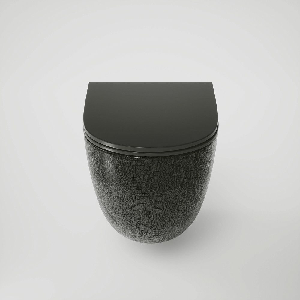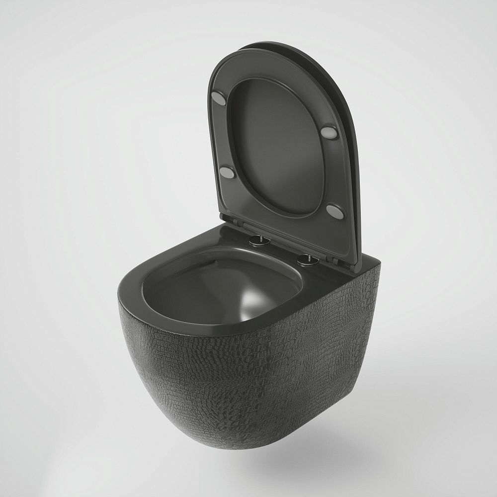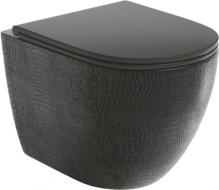Унитаз подвесной безободковый Grossman Color GR-4455BBLS, сиденье с крышкой микролифт, цвет чёрный глянец с текстурой кожи крокодила.