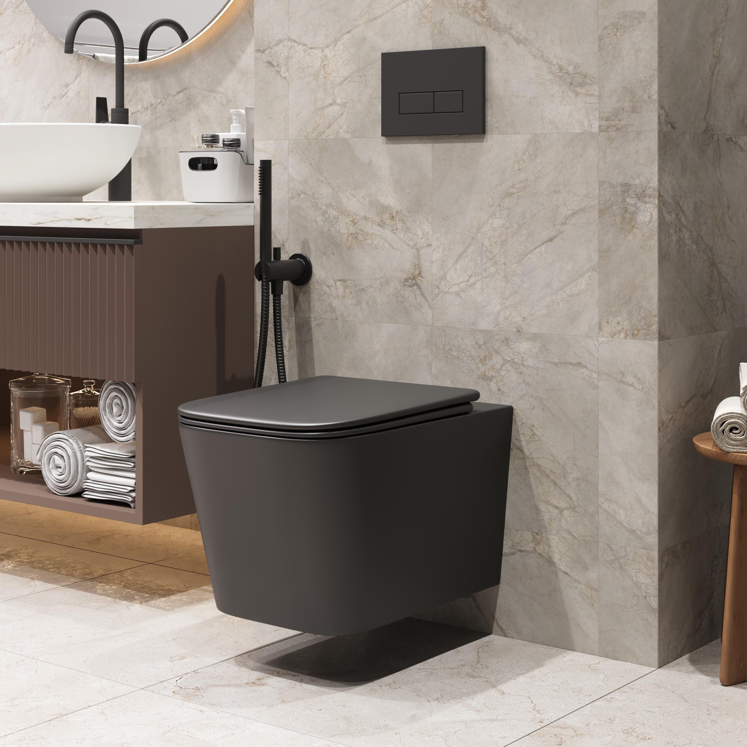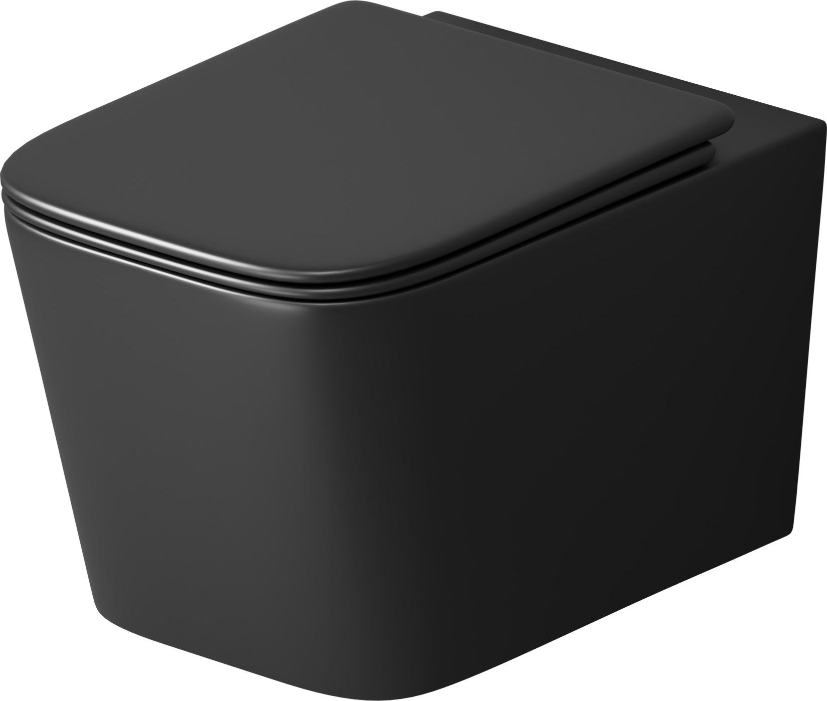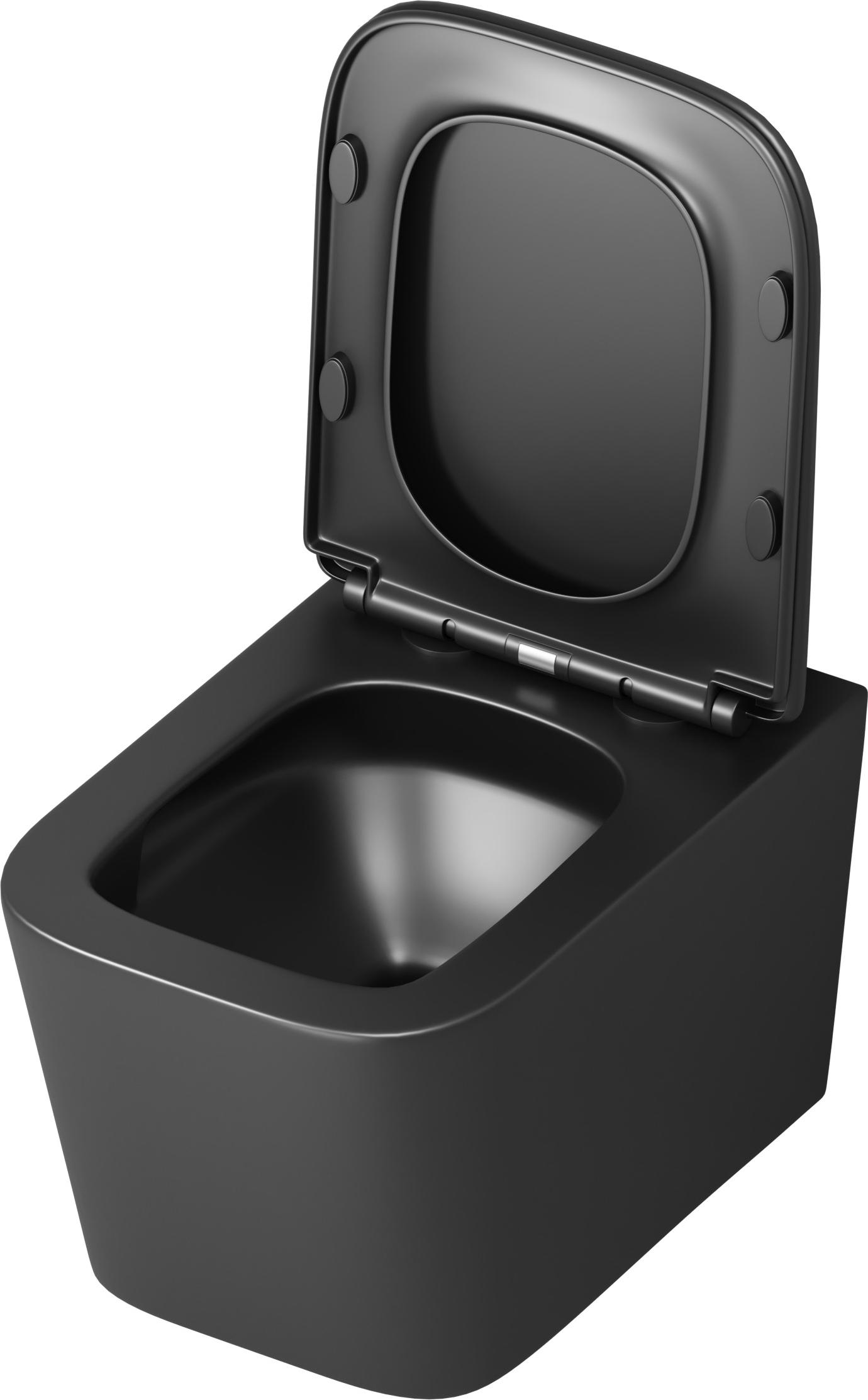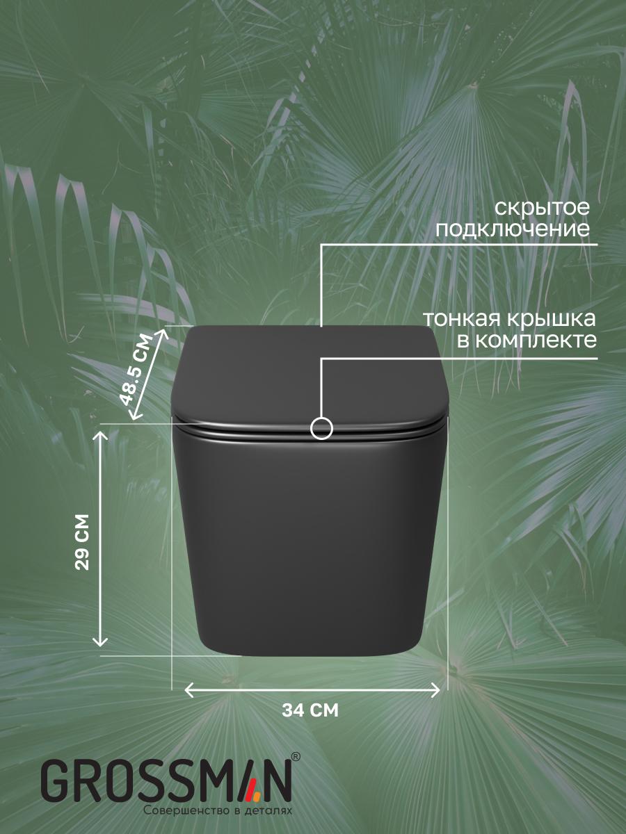 Унитаз подвесной безободковый Grossman GR-4404BMSQ с крышкой микролифт, чёрный матовый (Система смыва торнадо)