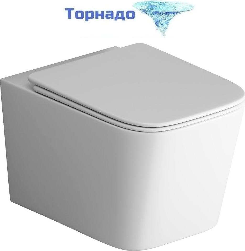 Унитаз подвесной безободковый Grossman GR-4404MSQ с крышкой микролифт, белый матовый (Система смыва торнадо)