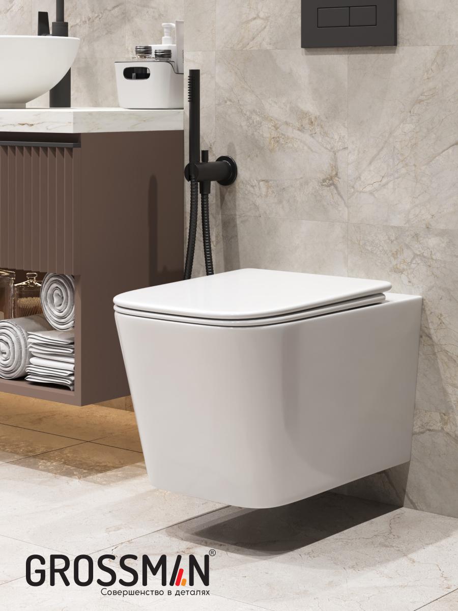 Унитаз подвесной безободковый Grossman GR-4404SQ, в комплекте сиденье с крышкой микролифт, цвет белый глянцевый.
