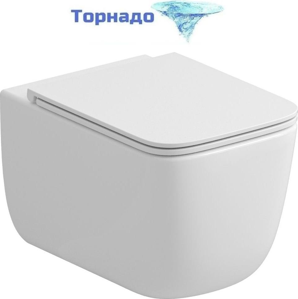 Унитаз подвесной безободковый Grossman GR-4409SQ с крышкой микролифт (Система смыва торнадо)