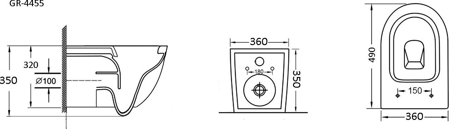 Характеристики унитаз безободковый,унитаз подвесной Grossman (GR-4455S)