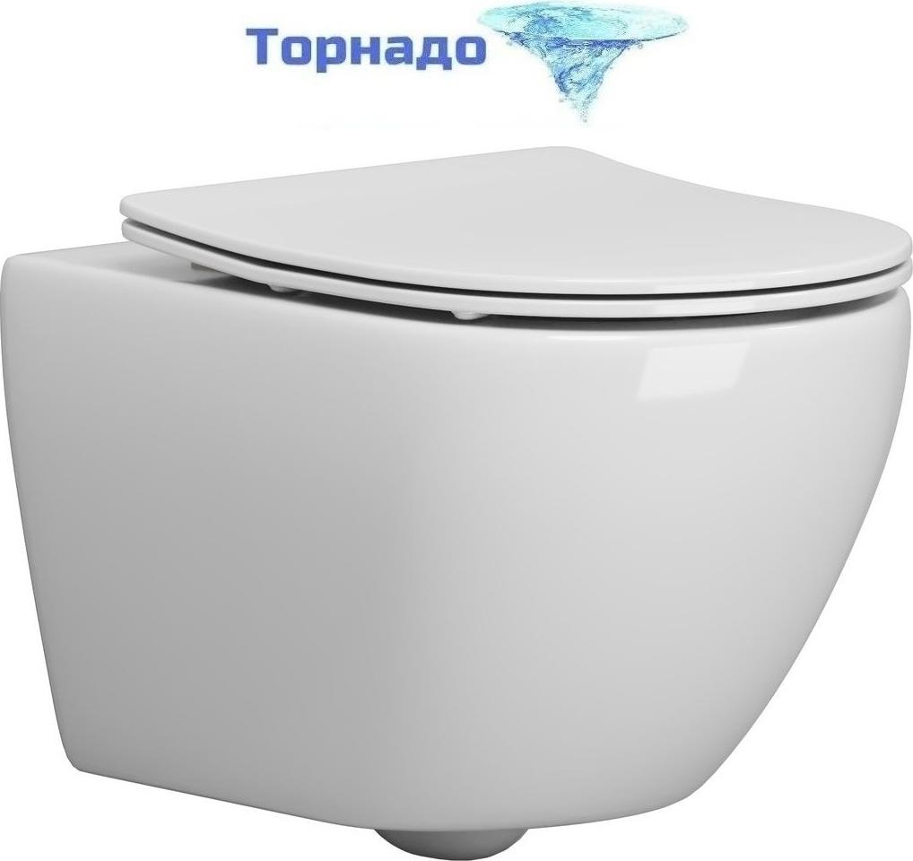 Унитаз подвесной безободковый Grossman GR-4457SQ с крышкой микролифт (Система смыва торнадо)