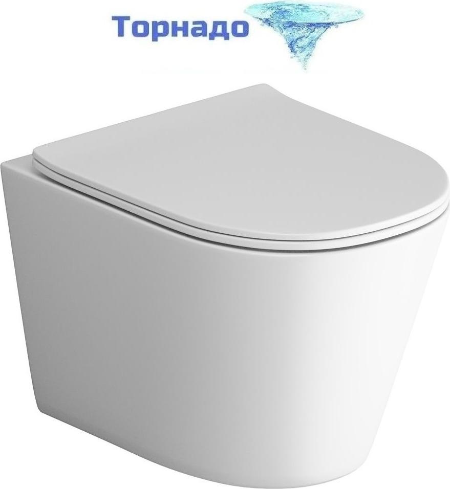 Унитаз подвесной безободковый Grossman GR-4477MSQ с крышкой микролифт, белый матовый (Система смыва торнадо)